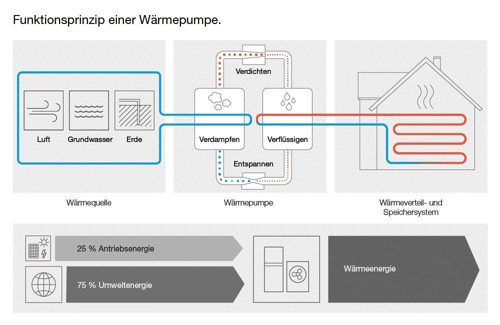 Was wäre, wenn die uns umgebende Umweltwärme ganz einfach unser Zuhause wärmen könnte? Mit einer Wärmepumpe geht genau das, sie nutzt die unerschöpfliche Energiequelle aus Erdreich, Grundwasser und Umgebungsluft. Erneuerbare Energie, die sich direkt vor ihrer Haustür befindet. Deshalb gelten Wärmepumpen als die zukunftsfähigste Form des modernen Heizens mit erneuerbaren Energien. Sie bieten Ihnen die Möglichkeit, ihr Zuhause durch regenerative und nachhaltige Energie mit Warmwasser und gemütlicher Wärme zu versorgen.